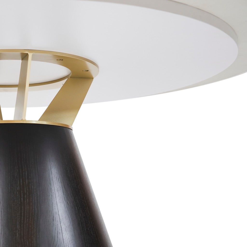 MESA DE COMEDOR REDONDA, Blanco marmoleado con base dorada + bronce 150*74.6cm